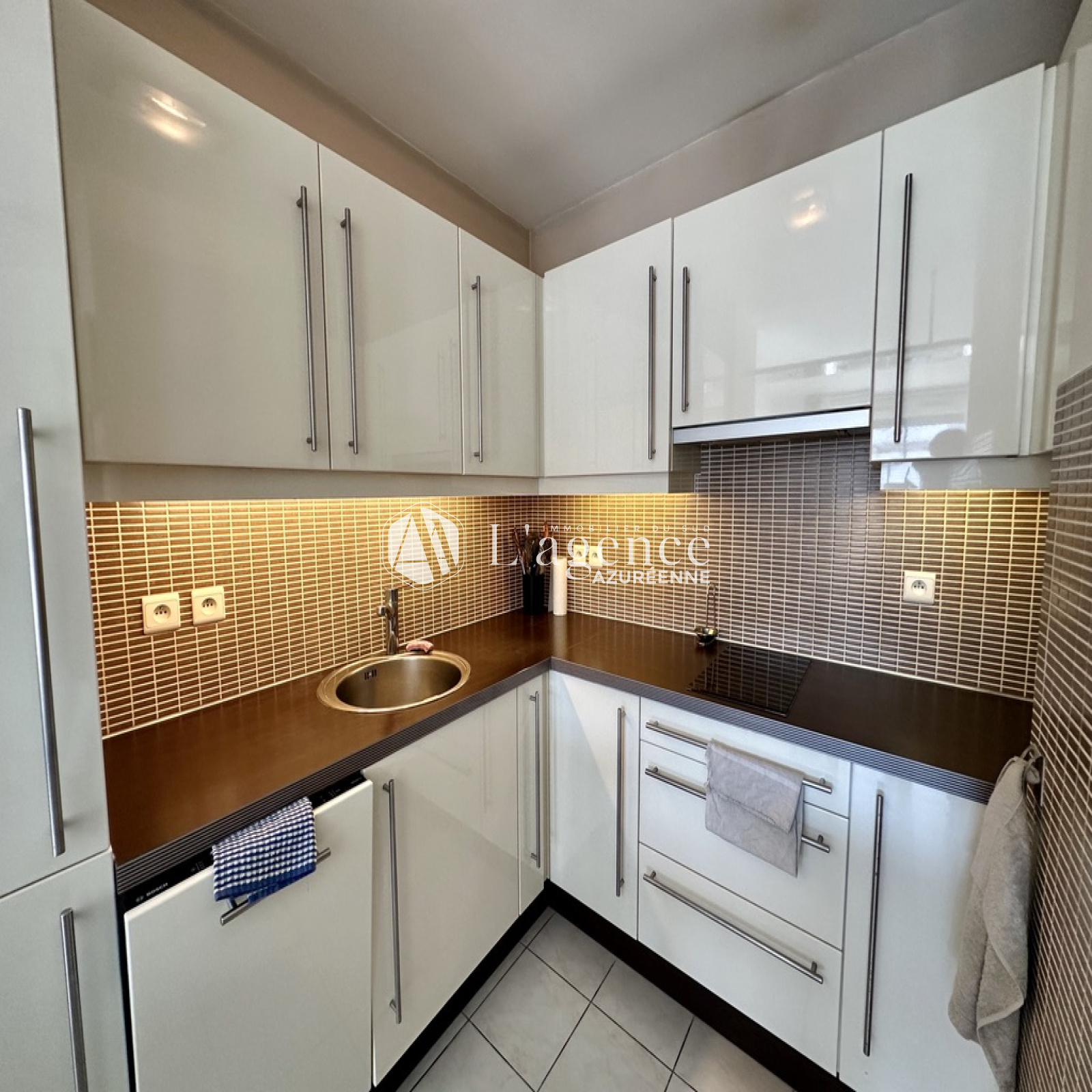DANS RÉSIDENCE DE STANDING À DEUX PAS DE LA MER, BEAU DEUX-PIÈCES EN PARFAIT ÉTAT DE 40 M² AVEC TERRASSE SÉJOUR CUISINE ENTIÈREMENT ÉQUIPÉE CHAMBRE AVEC PLACARD SALLE DE BAI.