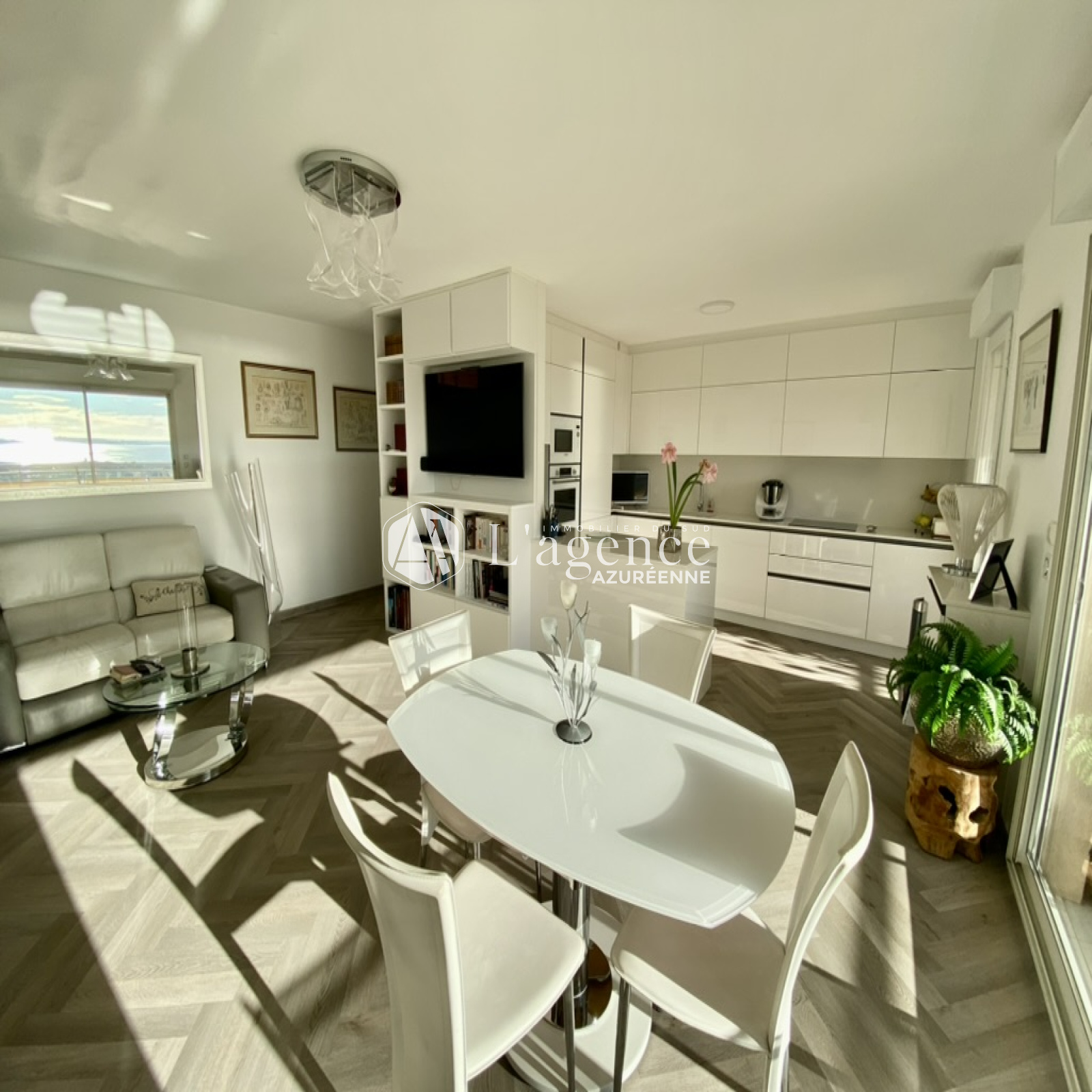 Superbe Appartement rénové Coup de Coeur offrant une vue mer et un cadre de vie exceptionnel dans une des plus belles résidences de Nice Ouest, avec Piscine à débordement, pool house, terrain de pétanque...