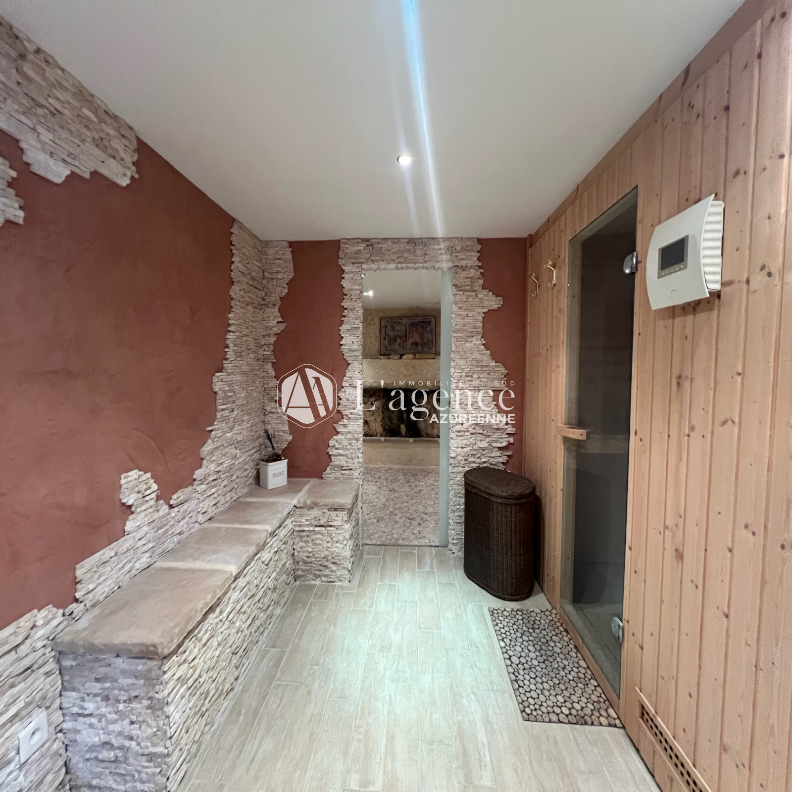 Située à Villeneuve-Loubet, dans un domaine sécurisée de 18 villas, à proximité du parc de Vaugrenier et de la plage, Superbe Villa individuelle d'environ 238 m² avec piscine offrant une vue panoramique mer. Dans un environnement calme, ce produit rare et recherché vous séduira par son emplacement. Exposition dominante et Plein Sud. Elle se compose d'une magnifique pièce de vie de 62 m² avec une cuisine américaine entièrement équipée, une arrière cuisine / cellier. Celles-ci ouvrant sur une vaste terrasse. 3 grandes chambres en suites dont une avec dressing. Une 4eme chambre ou bureau. Vous trouverez également plusieurs espaces jardins et terrasses tout autour de la villa. Des toilettes indépendants ainsi qu'un espace détente avec sauna et une magnifique cave à vin de 12 m² donnant sur un spacieux salon. Ce bien possède également un garage fermé et de nombreuses places de stationnements Située à15 min de l'Aeroport de Nice et 20 min de Cannes, proximité de la plage et de toutes les commodités. Les informations sur les risques auxquels ce bien est exposé sont disponibles sur le site Géorisques : https://www.georisques.gouv.fr CLASSE ENERGIE C Charges mensuelles : 370 € (charges domaine et consommation eau froide)
