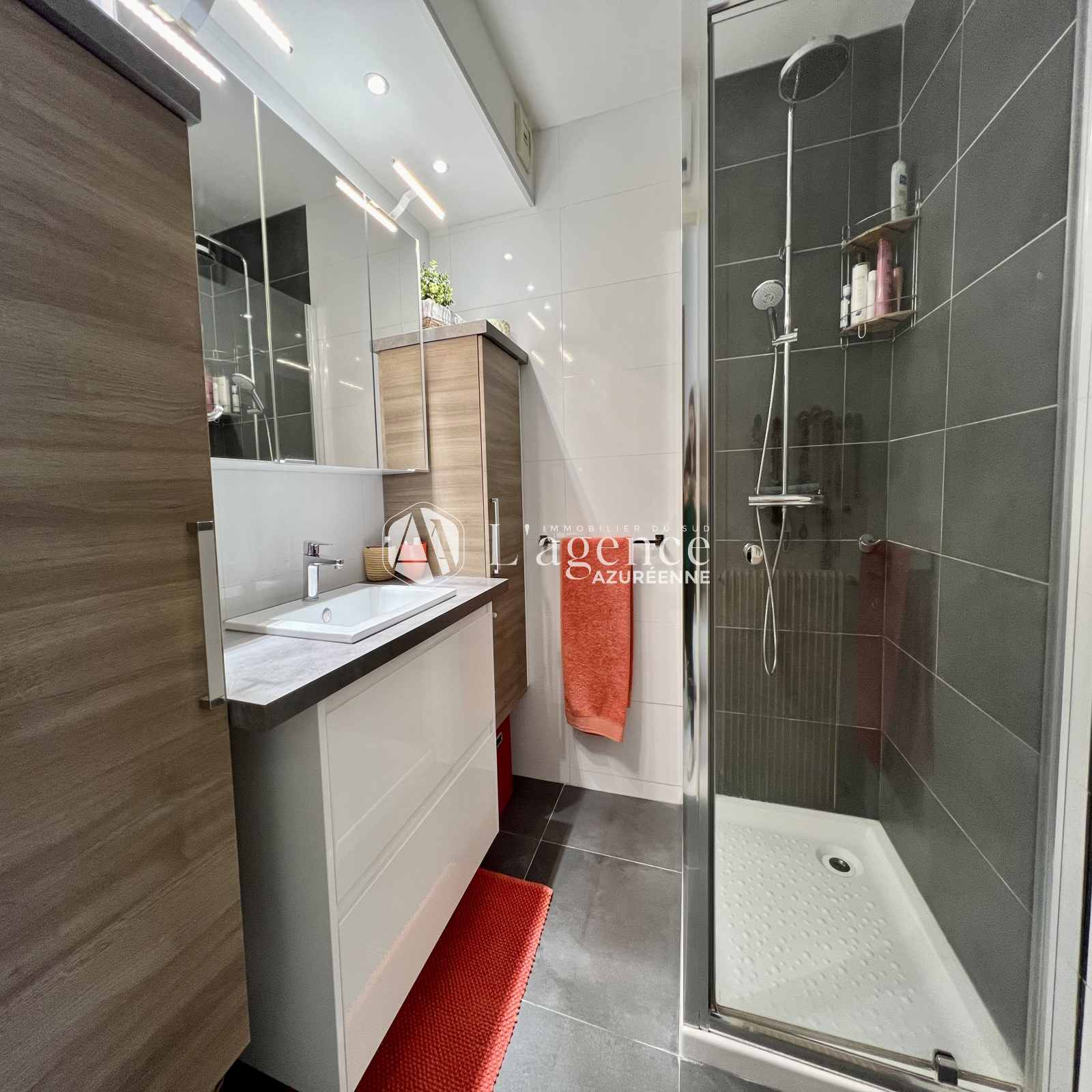 Une jolie chambre avec rangements. Une salle de douche moderne.